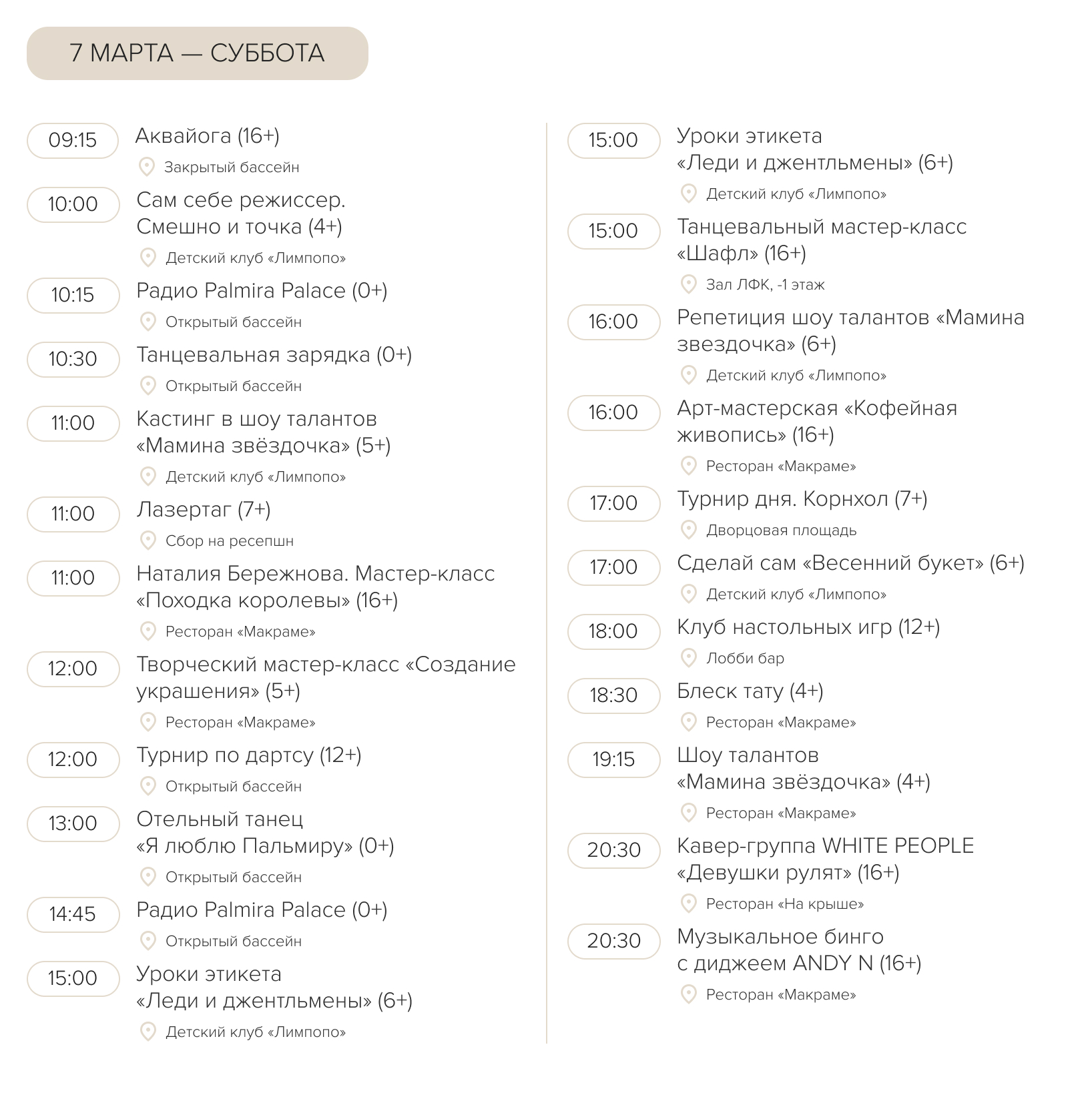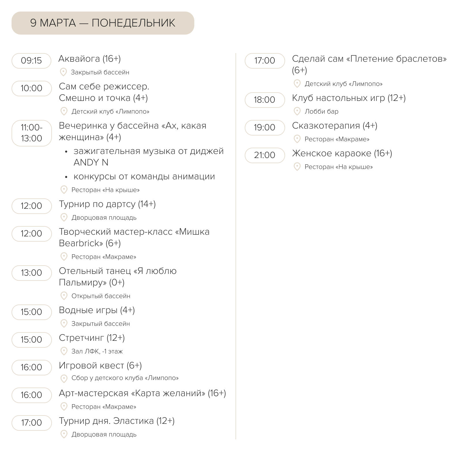 • детская анимация и развлечения