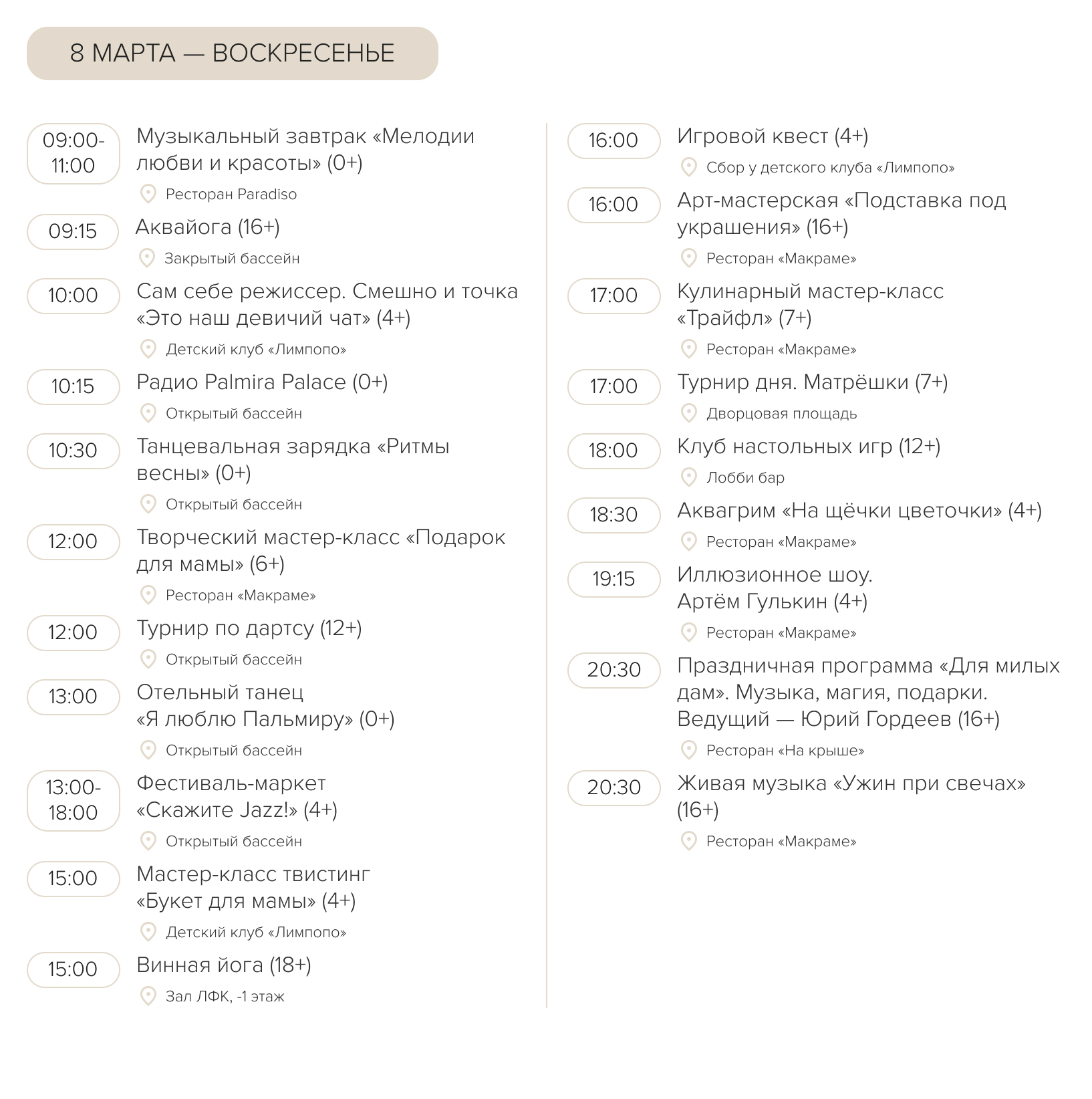 8 марта в Palmira Palace пройдет уникальный фестиваль-маркет, который сочетает в себе атмосферу джаза, французского шарма и яркого гастрономического уличного формата. На протяжении дня: